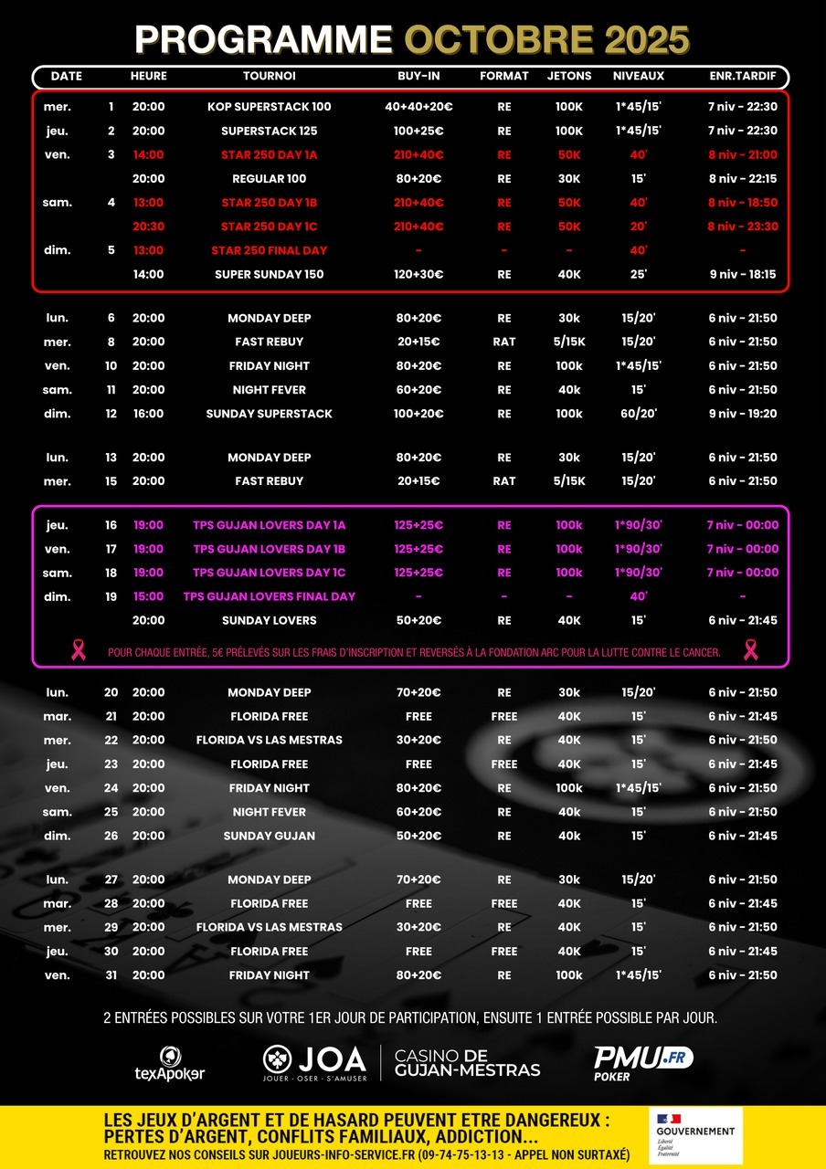 Scoprite tutte le informazioni sui tornei settimanali al casinò JOA di Gujan-Mestras!