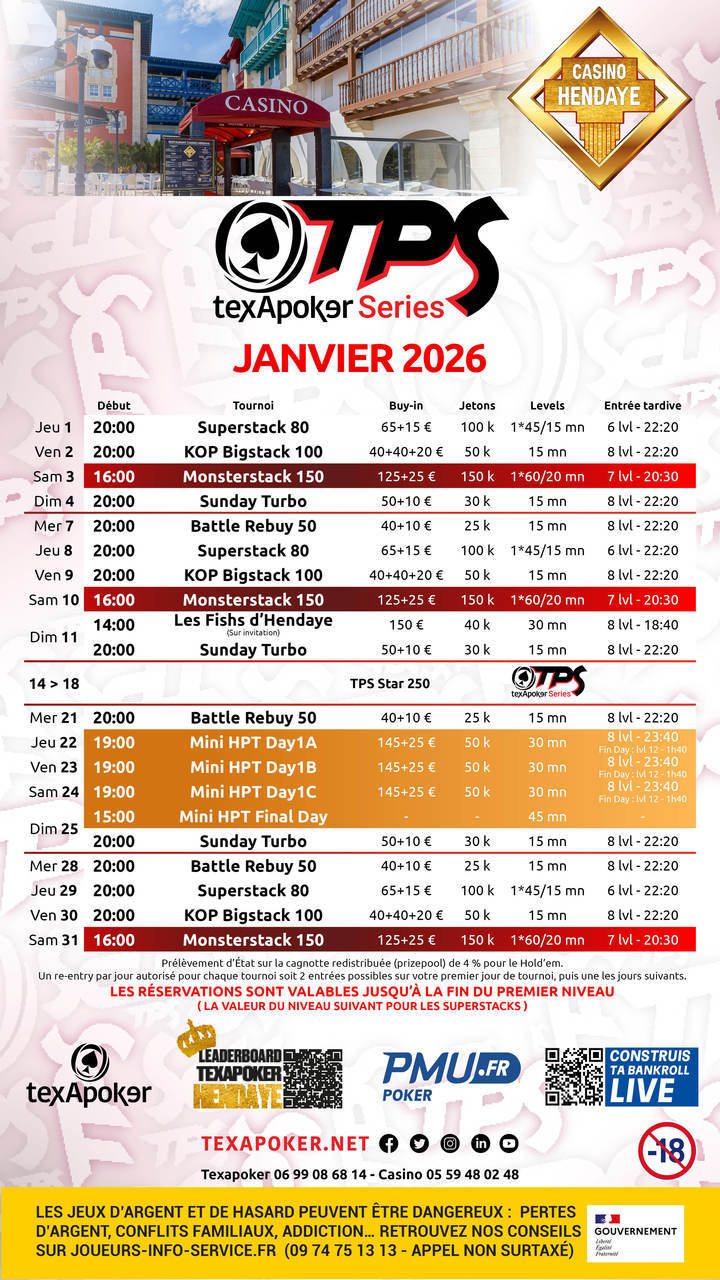 Texapoker e il Casinò d'Hendaye presentano il loro programma di tornei settimanali!