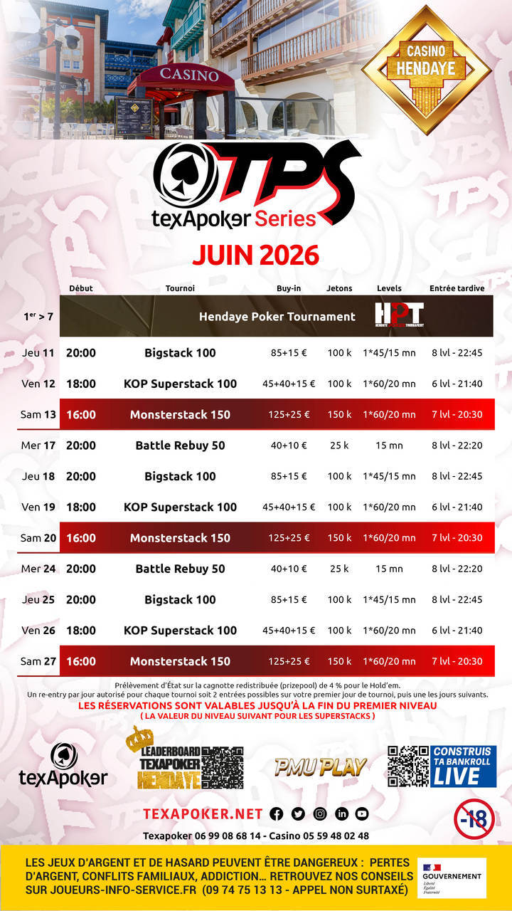 Texapoker e il Casinò d'Hendaye presentano il loro programma di tornei settimanali!