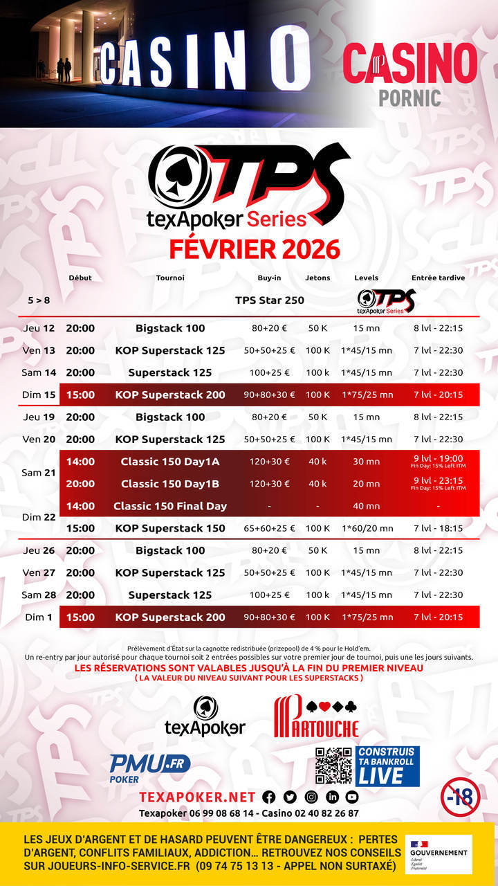Il TPS è il marchio di fabbrica di Texapoker! Come in tutti i tornei TPS, i biglietti vinti su PMU.fr possono essere utilizzati per qualsiasi torneo.