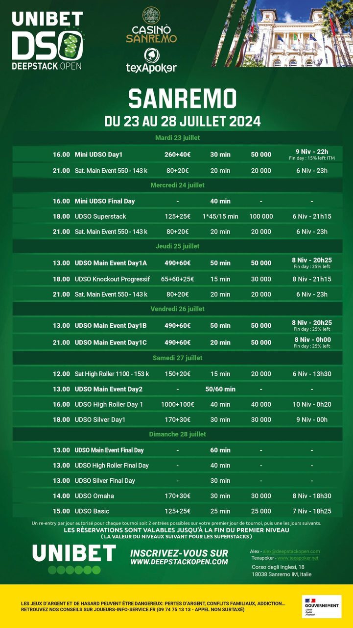 L'Unibet DeepStack Open torna per il 2024, sempre in collaborazione con Texapoker! La prima tappa di questo tour si svolgerà al Casinò di Sanremo!